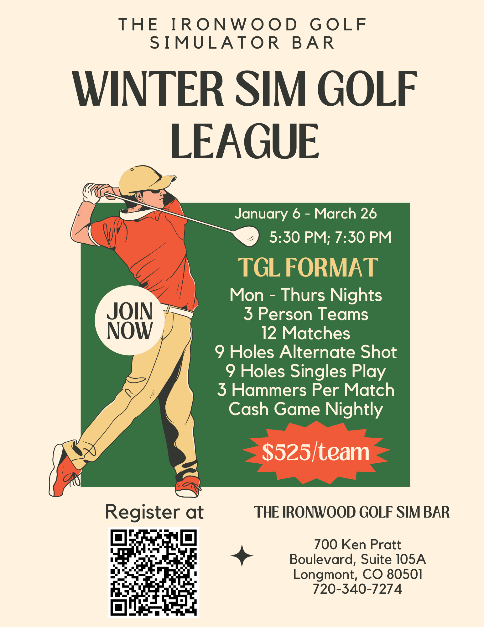 ⛳🍻💰 Welcome to the 2026 Winter Golf League at Ironwood! We will be playing the 3 v 3 TGL League Format again this season. Our version of the TGL Format is as follows: